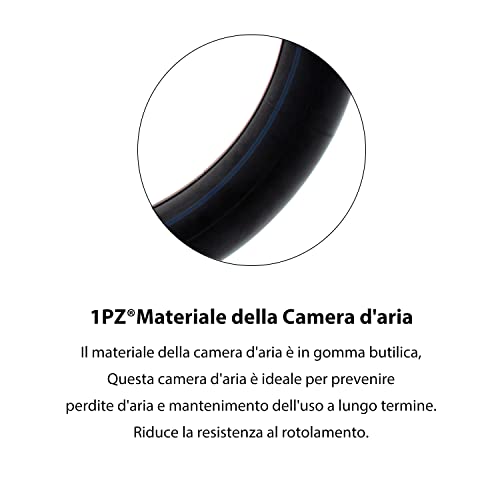 【Materiale】: questa camera d'aria è fatta di gomma isobutilica isoprene, che è migliore in termini di tenuta all'aria, di ammortizzazione elastica e di lunga durata rispetto a quelle in gomma naturale.