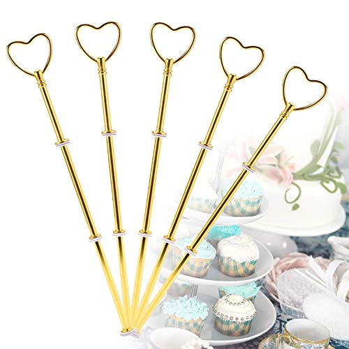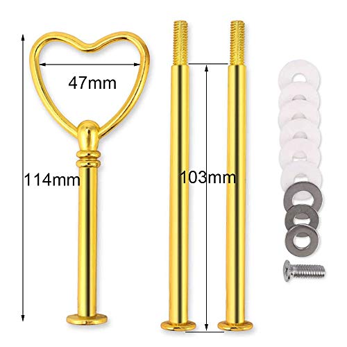 Nsiwem 5 Imposta Alzata per Torta Cake Stand Accessori Kit Kit Stand per Torte aste per Torte Supporto per Dessert Maniglia 3 Livelli di Stand per Il tè pomeridiano(Cuore, Oro)