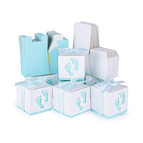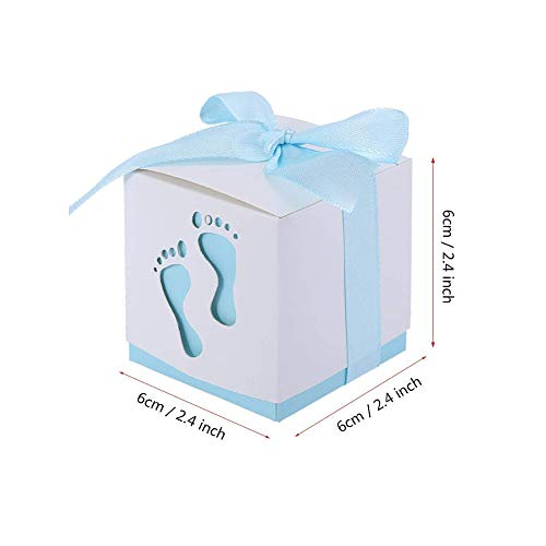 Nsiwem 50 Pezzi Scatoline Nascita Bimbo Scatole Bomboniere Scatoline Portaconfetti di Carta, con Nastri, per Festa Battesimo Nascita Comunione Bimbo Battesimo(6 * 6 * 6cm)