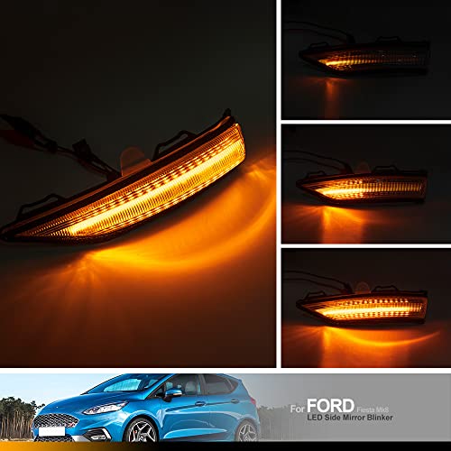 ✅Compatibilit: la luce dello specchietto laterale degli indicatori di direzione a LED ambra sequenziale adatta per Ford Fiesta Mk8 B479 Van ST-Line Active 2017 2018 2019 2020 2021 2022. Numero parte OEM: H1BB13B382, H1BB13B381,8802-500,8801-500,0000679712,0004