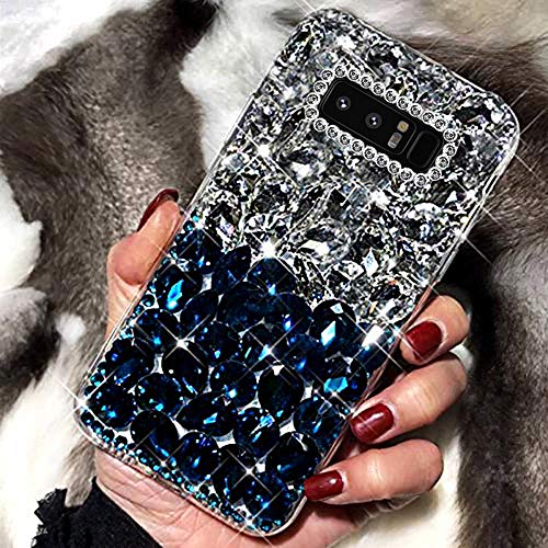 NSSTAR - Cover per Samsung Galaxy Note 8, con strass e brillantini, 3D, con glitter, trasparente, in silicone TPU, antiurto, colore: blu e argento