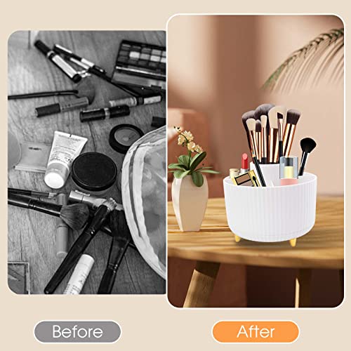 Nswayy Porta Trucchi Organizer, Organizzatore di Pennelli Trucco, Organizzatore Per Trucco Girevole a 360°, Organizer Trucchi Multifunzione per Toeletta Bagno Camera da Letto (Bianco)