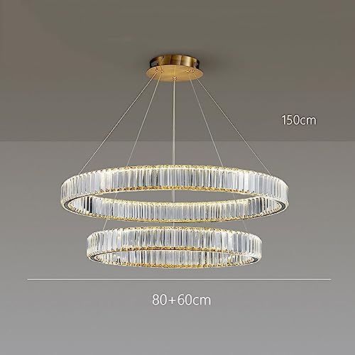 NSXBY Lampadario di Lusso scandinavo, Lampada di Cristallo Circolare di Lusso Leggera, lampadario di Cristallo Semplice Arte Moderna, per Camera da Pranzo Studio Soggiorno Illuminazione,d'oro,60+80cm
