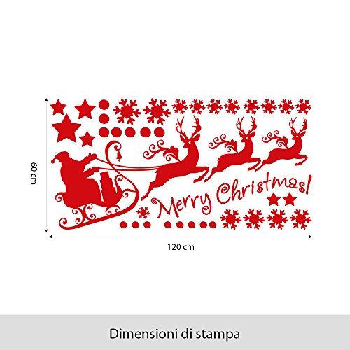 Kina NT0092 Slitta 120x60 cm - rosso - Vetrofanie natalizie Decorazioni per Natale adesivi natale