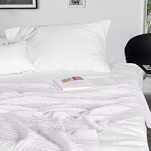 Ntbay Coperta al 100% in cotone, lavorata a maglia, super morbida e calorosa, multicolorata White