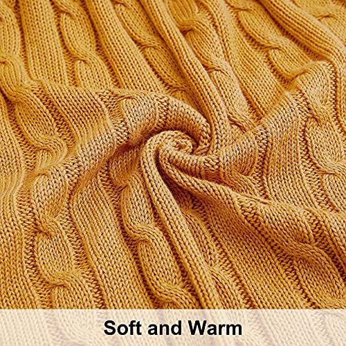 NTBAY Coperta in Maglia di Cotone, Coperta da Letto Multicolore Super Morbida e Calda, 130 x 170 cm, Giallo Zenzero