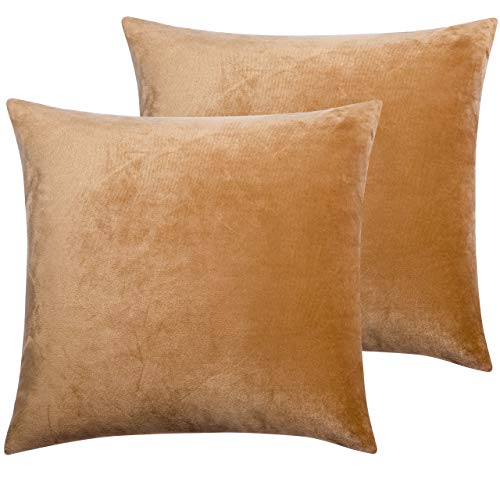 NTBAY Federa Quadrata in Velluto con Cerniera, Super Morbida e Lussuosa Decorazione Europea Euro (18 x 18 Inches) Cammello