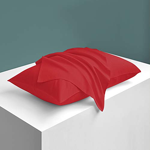 NTBAY Federe in Raso con cerniera, Coppia di Federe Guanciale in Morbida Microfibra per Capelli e Pelle, 50x80cm, Rosso