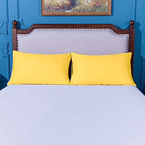 NTBAY Federe in Microfibra Tinta Unita, 2 Federe per Cuscini con Chiusura a Busta Morbida Antirughe e Antimacchia, 50x90 cm, Giallo