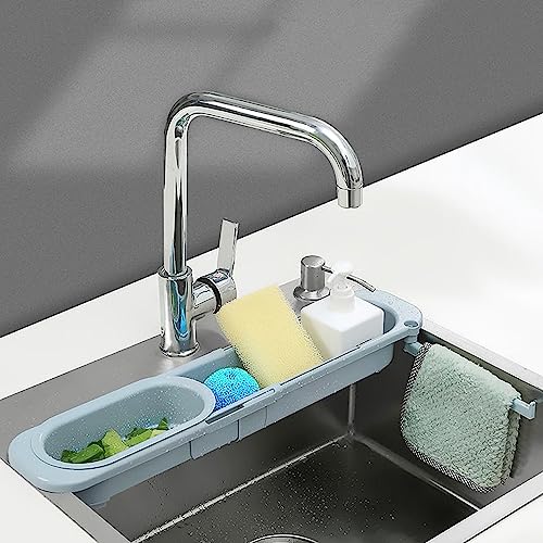 【Strumento ideale per la cucina】Questo supporto per lavello telescopico è progettato per adattarsi alla maggior parte dei lavelli da cucina, offrendo spazio aggiuntivo per riporre utensili da cucina, spugne, spazzole e altri accessori per la pulizia. È estensibile e facilmente regolabile per adattarsi a diverse dimensioni di lavelli.