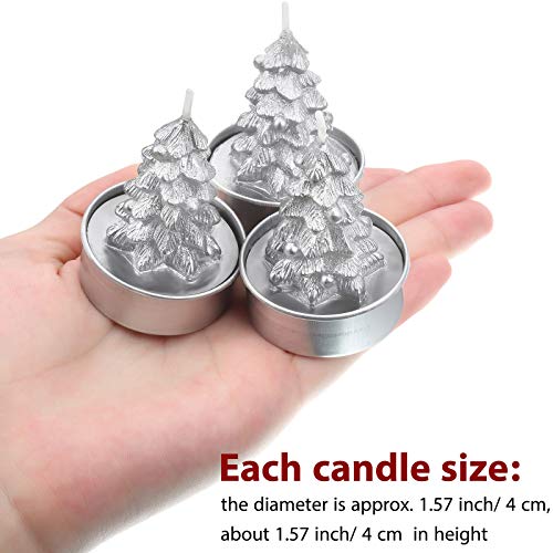 Nuanchu 12 Pezzi Candele Tealight Albero di Natale Candele ad Albero Delicate Fatte a Mano per Decorazione Domestica di Natale Regali (Argento)