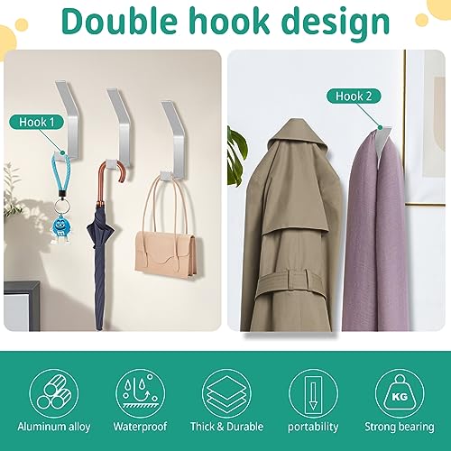 Design perfetto:Gancio Appendiabiti è il nostro nuovo design a doppio gancio, che impedisce efficacemente alla gruccia di strapparsi o scivolare sulla parete appesa. Il design a doppio gancio può facilmente contenere più oggetti diversi e risparmiare spazio. Il design a scomparsa non solo permette di riporre più oggetti, ma ha anche un aspetto migliore.