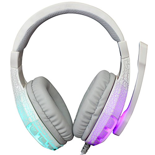 NUBWO NO 3000 Cuffie per PC Compatibile con PC Computer Gioco e illuminazione a LED Over-Ear Cuffia Fascia Microfono Regolabile e Controllo Annullamento del volume del Rumore (Bianco)