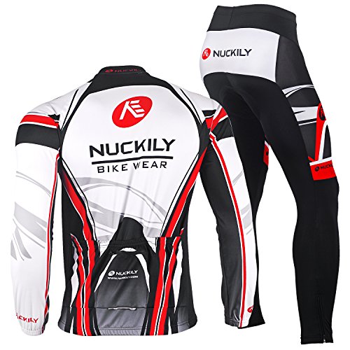 NUCKILY Completo Invernale Ciclismo Uomo Termico Vello Antivento Giacca Maglia Lunga Manica e Imbottiti 3D Pantaloni Set di Abbigliamento Bicicletta