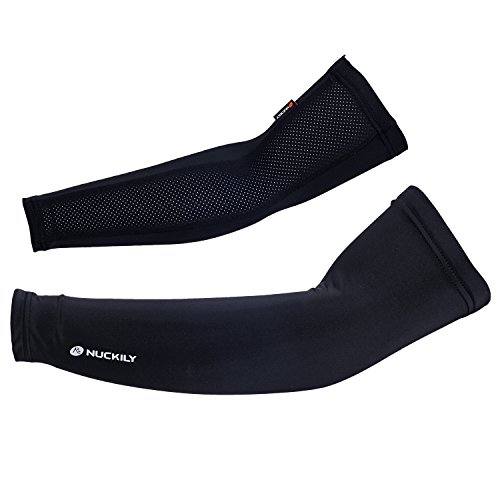 NUCKILY Cycling Arm Sleeve Summer Bicycle Arm Wear Sun Protection Sport Arm Sleeves Black Medium