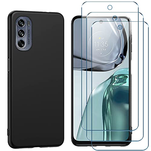 NUCNOK Cover per Motorola Moto G62 5G + [3 Pezzi] Pellicola Vetro Temperato,Silicone Custodia Scrub Molle di TPU Morbido AntiGraffio AntiCaduta Case(Nero)