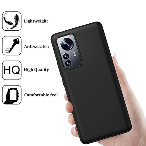 NUCNOK Cover per Xiaomi 12 + [3 Pezzi] Pellicola Vetro Temperato,Silicone Custodia Scrub Molle di TPU Morbido AntiGraffio Case(Nero)