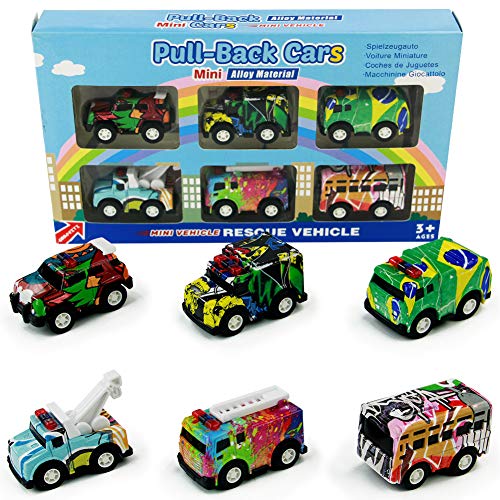 Nuheby Macchinine Giocattolo per Bambini Veicoli Mini Graffito Lega Tirare Indietro Auto Giocattoli Bambina Ragazza Ragazzo 3 4 5 6 Anni Regalo, Colori Casuale (6 Pezzi)