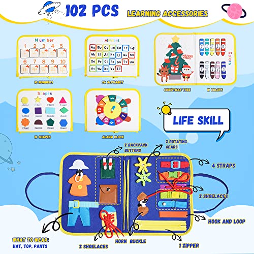 NUKied Busy Board Giochi Montessori 1 Anni,Feltro Pannello Sensoriale Montessori con Cerniere,Lacci, Bottoni,Giochi Educativi di Apprendimento per Bambini 12 3 4 5 Anni per Ragazzi Ragazze Toddler