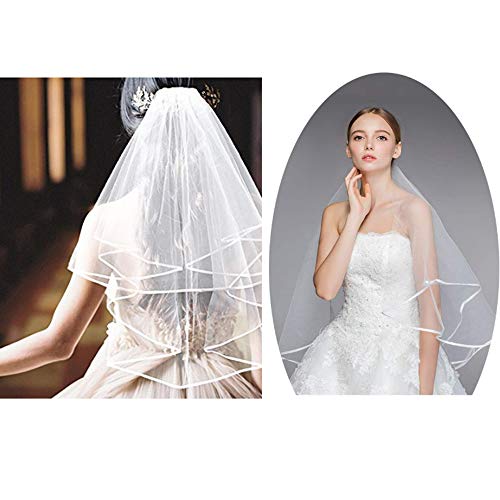 Qualità: realizzato in tulle bianco leggero e bianco, facile da indossare. Questo velare da sposa bianco a 2 livelli è un accessorio davvero carino. I 2 strati cadono elegantemente mentre tengono la forma. Il velo è attaccato ai capelli con un semplice pettine bianco che è saldamente cucito al velo.