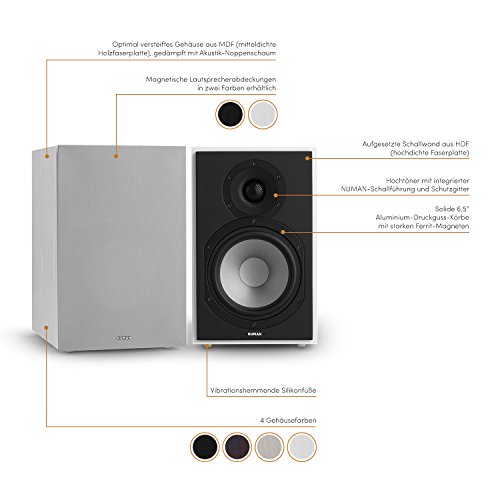 NUMAN Reference 802 Coppia Casse Altoparlanti da Scaffale (2 x 80 Watt, Diffusori a 2 vie, 4 Ohm, Schiuma Termo Acustica, MDF, Bass Reflex, Piedi in Silicone) bianco incl. Cover argento