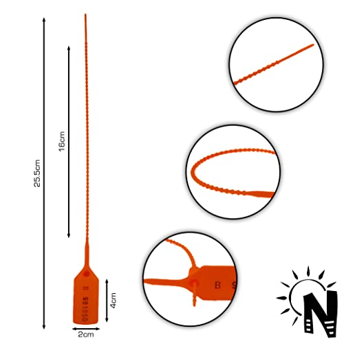 Made in UK Numerato Pull Seal, Anti Manomissione, Cravatte di sicurezza, Etichetta di sicurezza, Sigilli di sicurezza, Etichette di sicurezza, Sigillo di manomissione, (Arancione, 500)