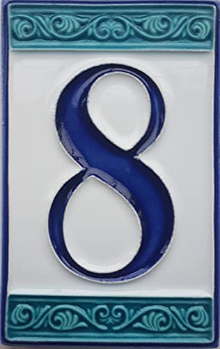 Numeri civici dipinti a mano in ceramica italiana, design greco, piastrelle Dimensioni: 11cm x 7cm (8)