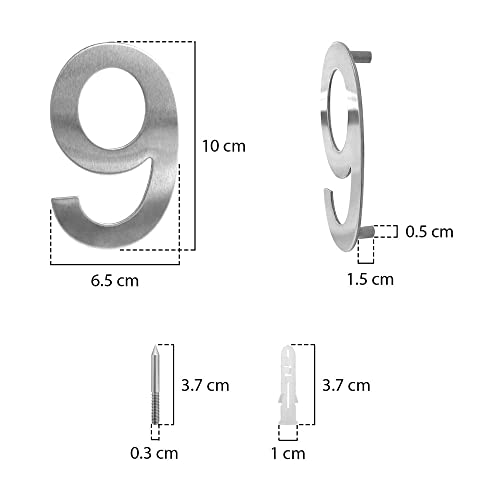Numero civico in acciaio inox Aspetto fluttuante, altezza 10 cm, numero civico design (9)