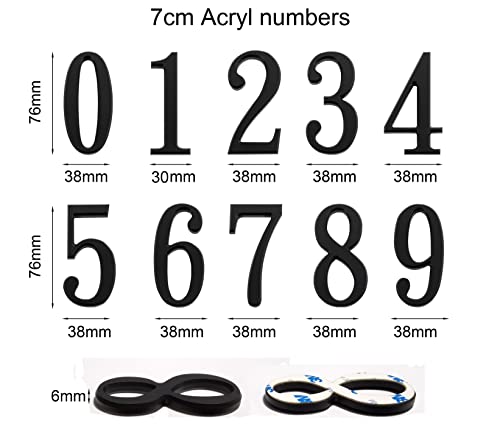 Numero civico nero, numero civico acrilico, numero civico autoadesivo, per porta, cassetta delle lettere,interno ed esterno,anticorrosione e antiruggine, resistente alle intemperie,3in/7.5cm(2)