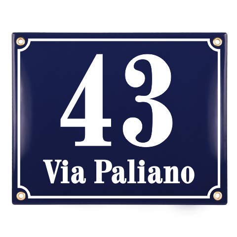 Numero Civico Esterno con Indirizzo - 20x25 cm - Targhe Personalizzate in ceramica - Blu