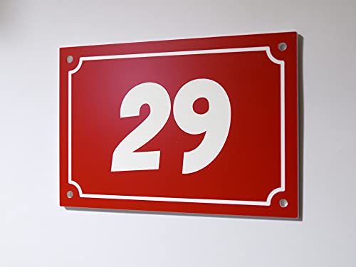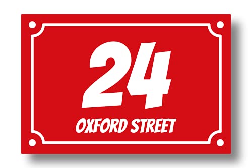 Numero civico in laminato plastico spessore 3.2 mm - Targa per esterno con incisione personalizzata - Formato rettangolare in 3 misure a scelta (Testo Bianco - Sfondo Rosso)