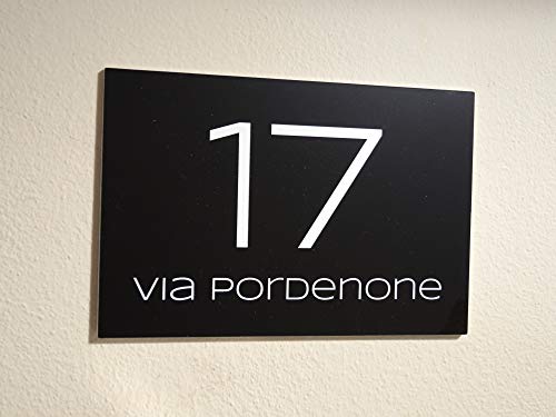 Numero civico in laminato plastico spessore 3.2 mm - Targa per esterno con incisione personalizzata - Formato rettangolare in 3 misure a scelta (Testo Bianco - Sfondo Nero)