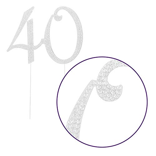 Numero 40 Decorazione topper argento per il 40 esimo anniversario ottimo per compleanni o feste di anniversario con strass e brillantini.