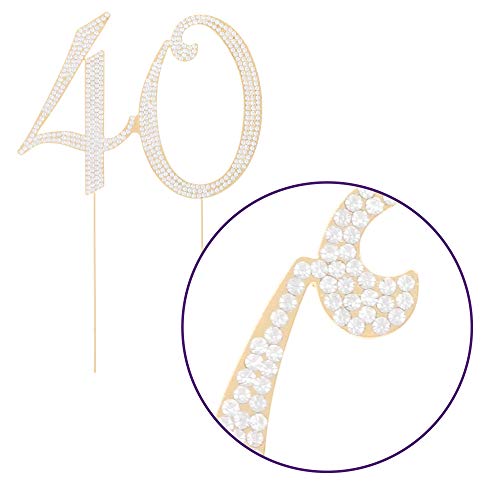 Numero 40 Decorazione topper d'oro per il 40 esimo anniversario ottimo per compleanni o feste di anniversario con strass e brillantini.