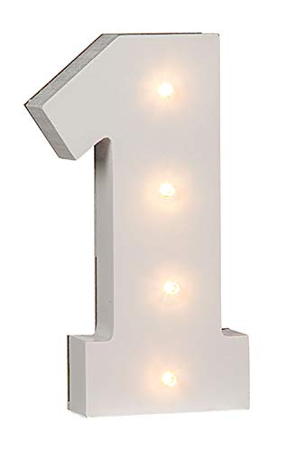 Out of the blue Numero in Legno 1" Illuminato con 4 luci LED, Funzionamento a Batteria, Circa 16 cm. 1 W, Bianco, 16 x 3 x 16 cm