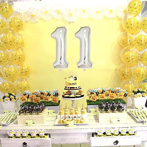 2 Numero di Palloncini 11, Numeri 11 Anni Compleanno Decorazioni Argento Bimbo Bambina Ragazza Ragazzo Uomo, 40" Gigante Foil Elio Palloncino Gonfiabile Balloons Happy Birthday Festa (XXXL 100cm)
