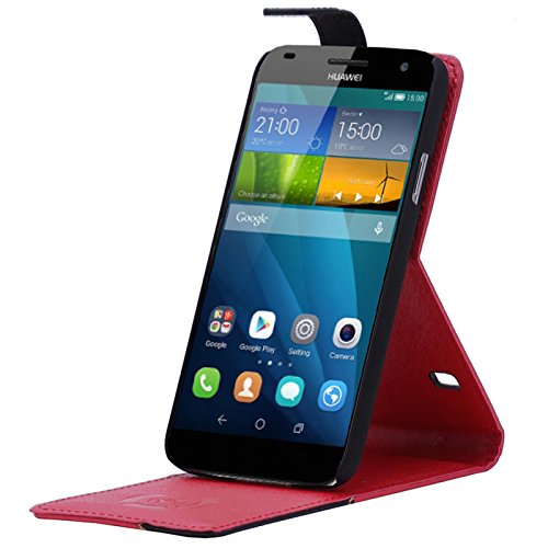 Numia - Custodia protettiva per Huawei Ascend G7, in pelle PU, con funzione di supporto e scomparto per carte di credito, colore: Nero/Rosso