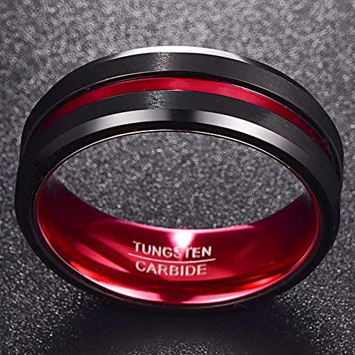 NUNCAD Anello da uomo e donna in tungsteno largo 8 mm, nero + rosso con design a incastro e comfort per matrimoni, stile di vita, carnevale e partner, taglia 70 (30)