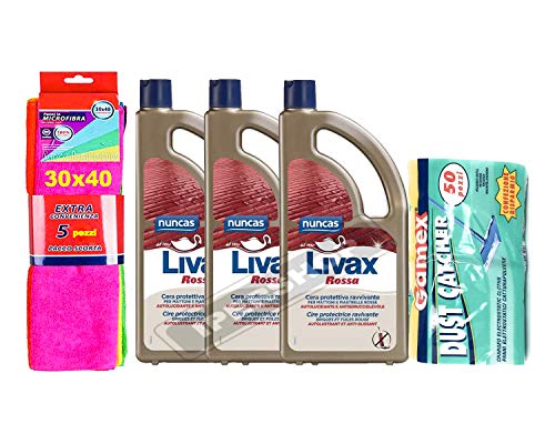 NUNCAS SET 3 PEZZI LIVAX ROSSA 1LT + GAMEX 50 panni elettrostatici cattura polvere maxi formato 22x29cm+ pacco scorta 5 panni microfibra 30x40cm