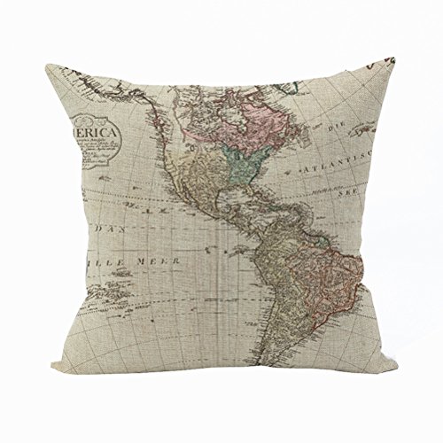 Nunubee Classico Federa con Cerniera Quadrato Cuscino Morbido Cotone Accessori per la Casa Divano Letto 45*45cm Carta Geografica