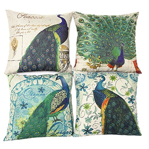 Nunubee - Federa per cuscino da divano, in cotone, motivo: pavone D