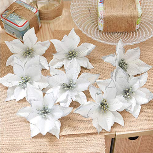 NUOBESTY 24pcs decorazione dell'albero di natale simulazione fiore polvere d'oro fiore d'argento