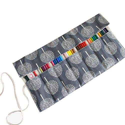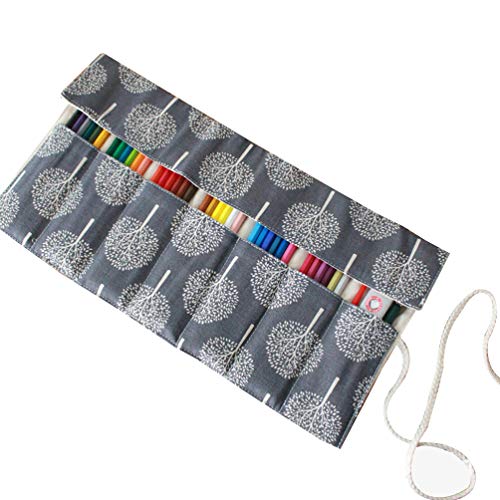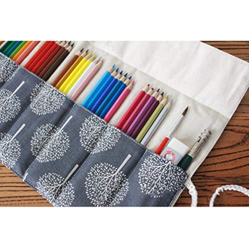 NUOBESTY astuccio portamatite in tela portamatite portatile portamatite a rotolo rotante fatto a mano organizzatore con 48 fessure (albero)