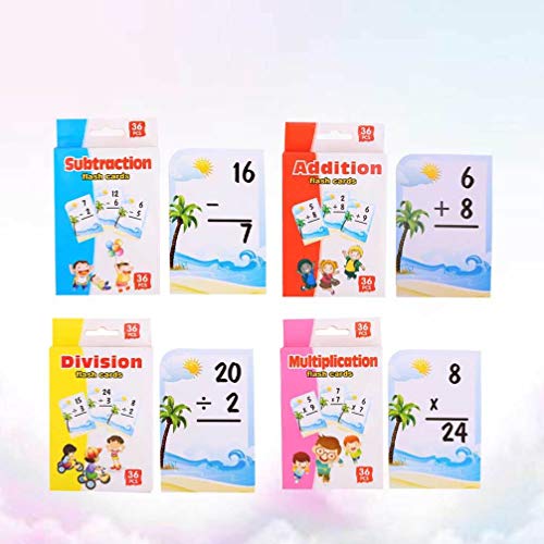 NUOBESTY Giocattolo Schede Didattiche 4 Caselle Matematiche Flashcard Addizione Sottrazione Moltiplicazione Divisione Carte Numero Carte per Gioco Asilo Bambini Schede Flash Aggiuntive