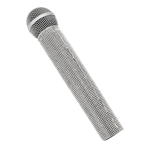 NUOBESTY Microfono giocattolo Prop Microfono portatile Glitter Diamond Portable Karaoke Mic Speaker Player per Costume Festa di compleanno Puntelli Festa di compleanno Favore Argento