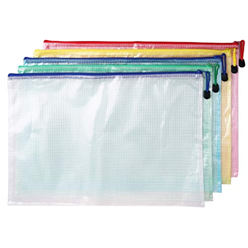 Nuoshen, Buste portadocumenti con cerniera, formato A3, in rete, per scuola, ufficio, lavoro a casa, 10 pezzi