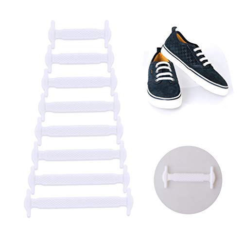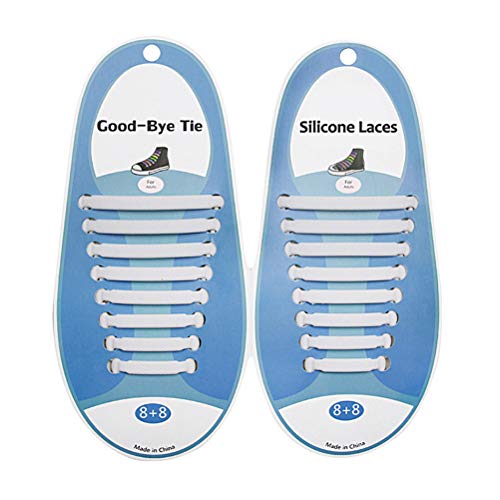 Nuoshen Lacci delle Scarpe Elastici in Silicone, 3,5 - 7cm Lacci per Scarpe Senza Nodo, Lacci Elastici Bianco per Bambini e Adulti Scarpe Sportive Stivali da Ginnastica