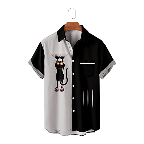 Nuova camicia a maniche corte stile hawaiano con stampa gatto parodia stampa, B, 4XL