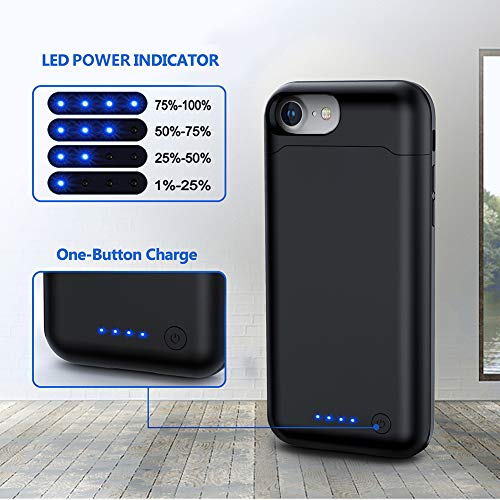 ☑ 【 LED indicatore di potenza intelligente 】 fino a 6000 mAh a + batteria ricaricabile può efficacemente fornire il vostro iPhone una maggiore durata della batteria, questa batteria iPhone Custodia presenta 4 LED indicatore livello batteria che consente di sapere esattamente quanta energia hai (0 -- 25% -- 50% -- 75% -- 100%);