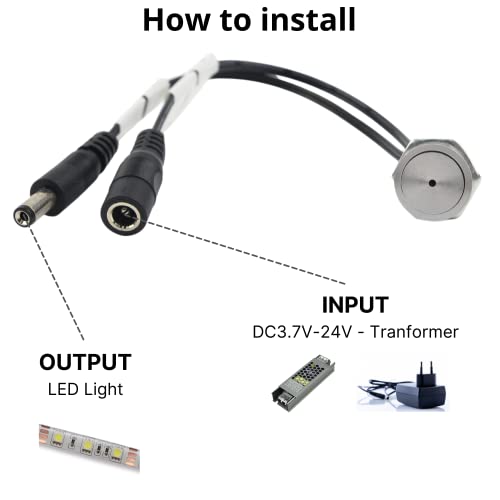 NUOVA GERMANY Interruttore Led Dimmer Touch Da Incasso Colore Acciaio Metallo 5V 12V 24V Con Cavo DC JACK Strip Strisce LED Dimmerabile con indicatore LED Arancione, Massima carica 3A (1 Pezzo)